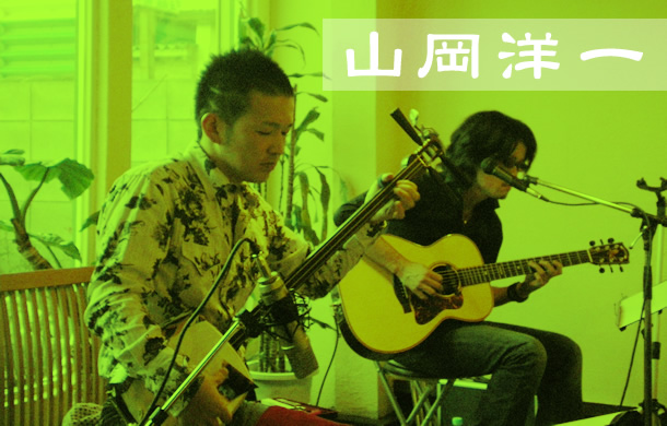 津軽三味線 山内利一と、ギター 富岡洋によるデュオ「山岡洋一」。